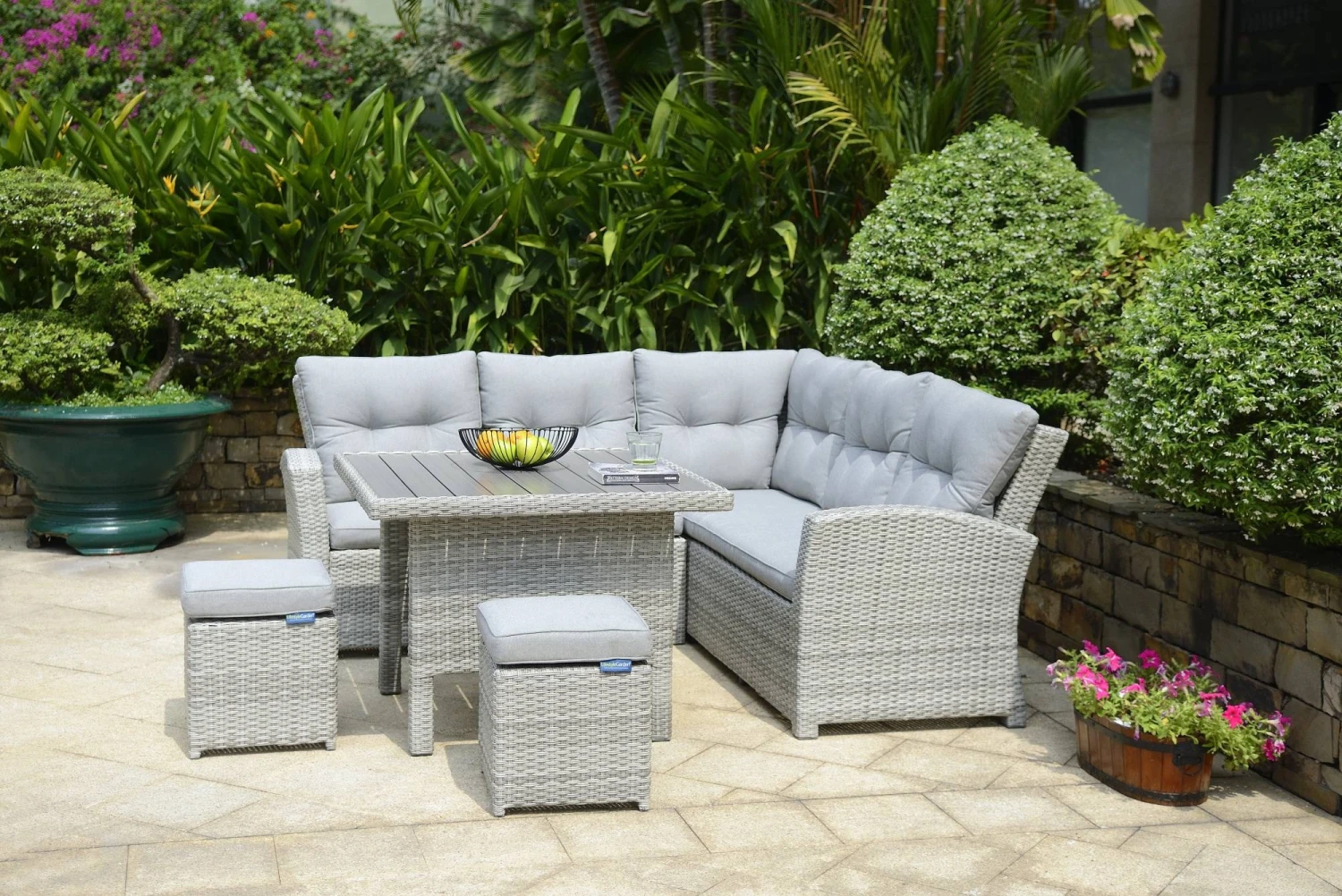 This Aruba range from Lifestyle Garden features Petan wicker, which is a weather resistant, maintenance free, 100% recyclable handwoven synthetic wicker that has excellent colour fastness. Petan is made from a combination of raw polyethylene and eco-friendly colourants to ensure a hard wearing & stylish weave.