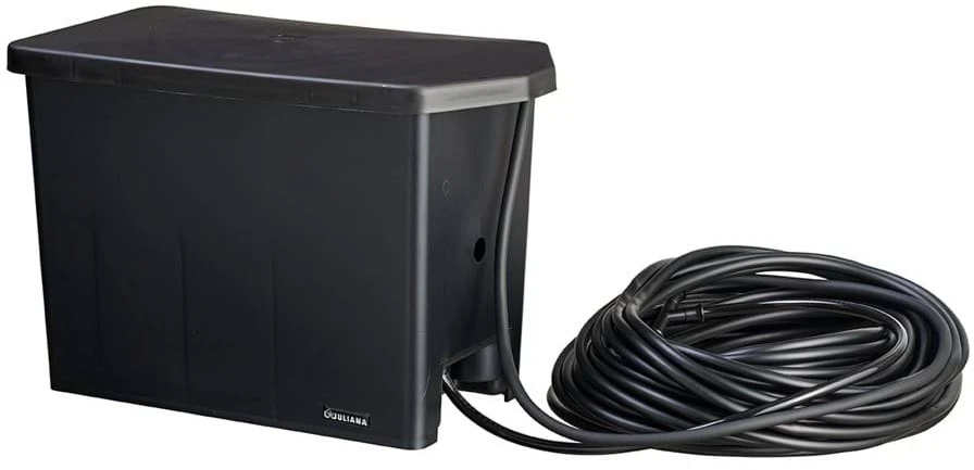 No power source is required, not even a solar panel or power plug, as the system is 100% gravity fed, meaning that it uses the power of gravity to force water out of the tank and out the hose and drip pins, making it very eco-friendly to use.